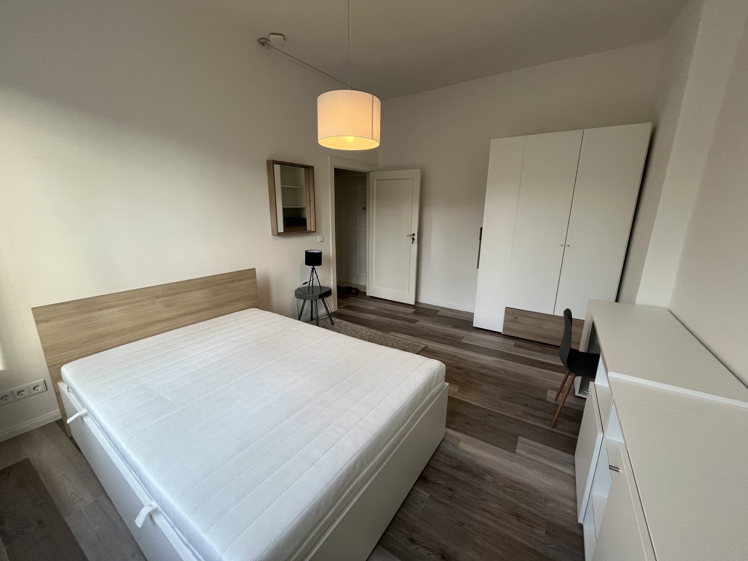 This is a beautiful flat in an old building with 5 rooms and 2 bathrooms, which has just been renovated. All rooms are furnished and individually lockable. The flat is equipped with a modern fitted kitchen with electrical appliances and complete furniture from Hülsta.